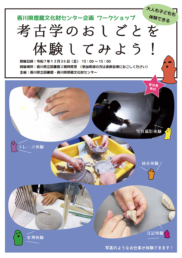 香川県埋蔵文化財センター企画 ワークショップ「考古学のおしごとを体験してみよう!」を開催します。