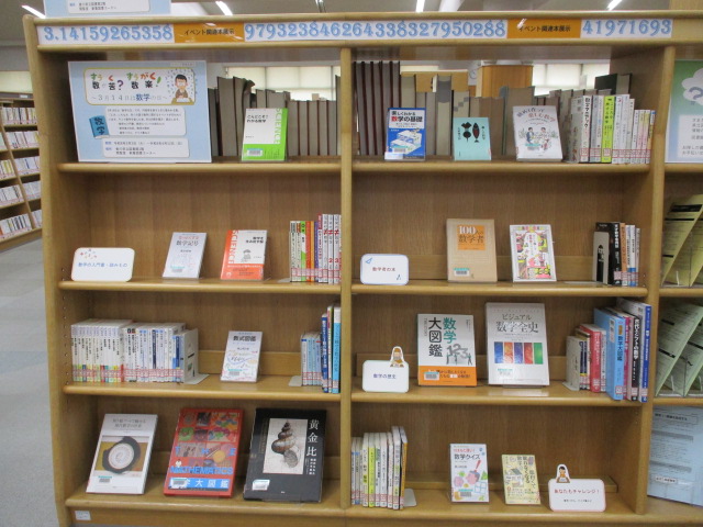 イベント関連本展示「数が苦(すうがく)?数楽(すうがく)!~3月14日は数学の日~」を開催しています