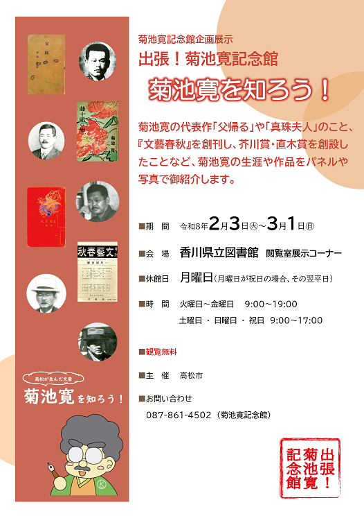 会場では、ミニ展示「菊池寛を知ろう!-香川県立図書館資料から―」を開催しています。