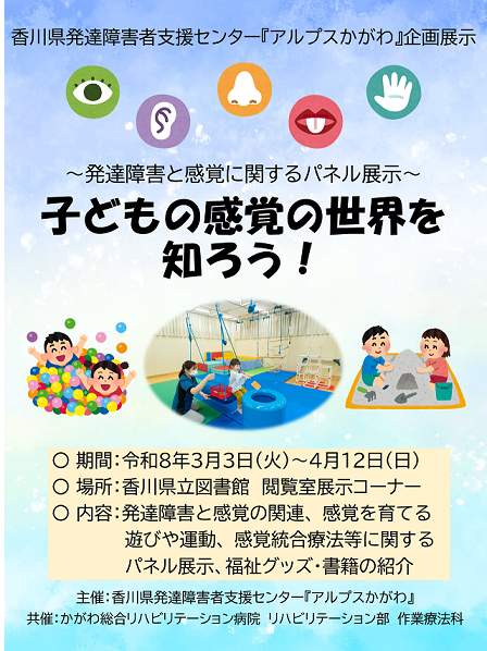 香川県発達障害者支援センター『アルプスかがわ』企画展示「子どもの感覚の世界を知ろう!」を開催しています。