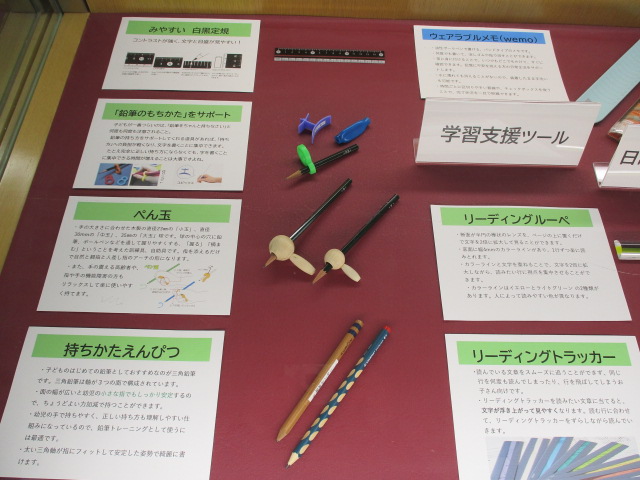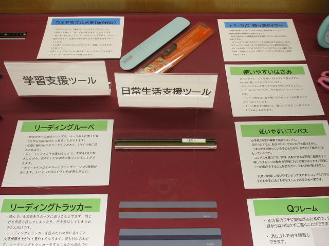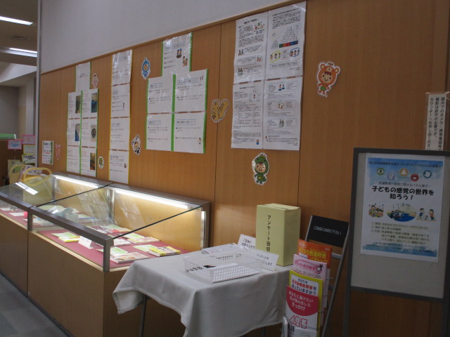 発達障害と感覚の関連、感覚を育てる遊びや運動、感覚統合療法等に関するパネル展示、福祉グッズ・書籍の紹介