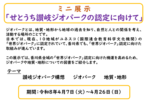 ミニ展示「せとうち讃岐ジオパークの認定に向けて」を開催しています。