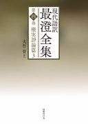 最澄の著作と伝えられるもののうち、真作と裏づけられる著作を集成。第4巻は、法相宗の碩学・徳一との権実諍論に関わる著作「通六九証破比量文」「決権実論」「法華秀句」を執筆年順に収める。解題等も掲載。最終巻。
