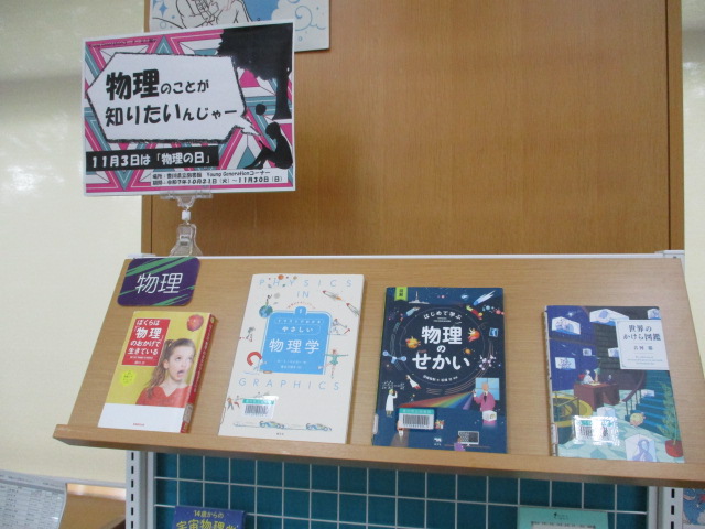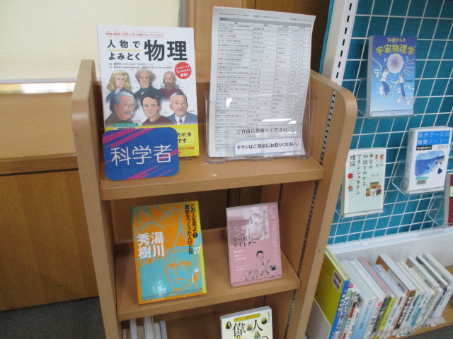 物理についてわかる本や物理学者についての伝記などを展示、貸出します。